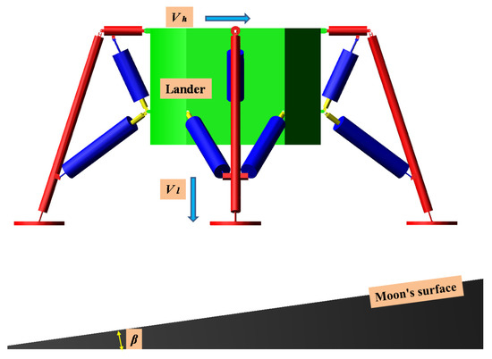 Additionally, the analysis of landing overload performance has also attracted great attention from the literature. Jones and Hinchey [32] and Kushida [33] have studied the impact of landing environment on airframe overload response, providing guidance for the study of buffering characteristics. In order to study the impact of different influencing factors on the overload response of the Lunar lander, Alderson and Wells [34] created mathematical models and computer programs. In reference [35], a 1/6-scale dynamic model of a lunar module type of spacecraft has been tested to determine the overturning stability boundaries for landings on nonlevel surfaces.