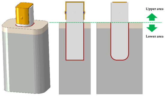 The teeth were separated into upper and lower regions based on the coronal position of PDL in order to analyze the displacement and rotation values of teeth according to various designs.