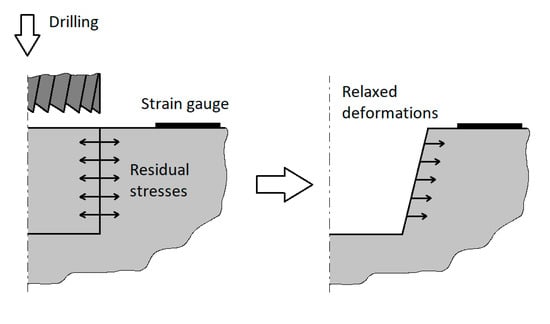 - Beghini, M.; Bertini, L. Recent advances in the hole drilling method for residual stress measurement. J. Mater. Eng. Perform. 1998, 7, 163–172. [Google Scholar] [CrossRef]