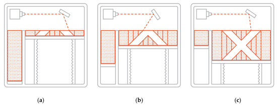 The DIC method measurement consisted of an images series periodically recorded over a specified period of time. Usually, the first image was the reference image [30]. The method adopted was to photograph the sample during a tensile test with a camera at constant intervals. The images recorded during the research were subjected to displacement analysis using BASLER’s Pylon software (version 6.1.0, Basler AG, Ahrensburg, Germany). This program compared all the photos recorded during the test to the reference image. It was based on determining the position of a given pixel on the reference image and ascertaining the displacement of this point on subsequent photos.