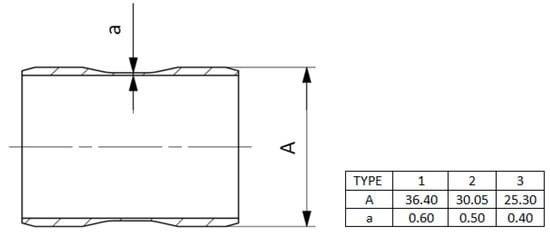 The scheme and general view of the tested sleeves are shown in Figure 1 and Figure 2 demonstrate the differences between the three types of the tested sleeves with wall thicknesses a1 = 0.6, a2 = 0.5 and a3 = 0.4 mm, respectively.