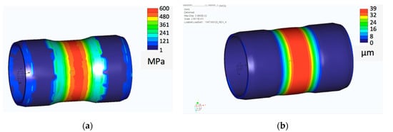 Figure 6. Examples of FEM simulation: (a) stress distribution; (b) deformations.