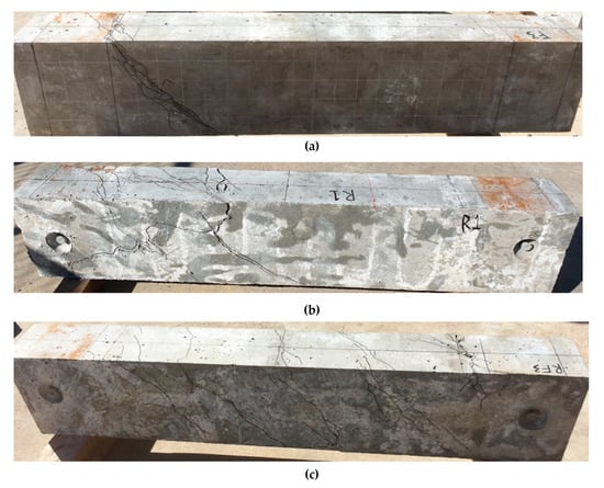 Figure 5. The crack width of most cracks formed was also smaller than conventionally reinforced. The formation of cracks in this series of beams was also gradual compared to the sudden formation of the purely fibre reinforced beams. No spalling was observed with hybrid reinforcements of all three beams. This was due to the increased tensile strength of the AAC matrix, which allowed the AAC to redistribute tensile strength over the cracks to other regions of the beam with higher crack surface area, to provide additional robustness to beams after the first crack. With the ability to increase tensile capacity over cracks, spalling of AAC was also prevented. The observations in this study are consistent with conventionally and fibre reinforced OPC beams in the literature [