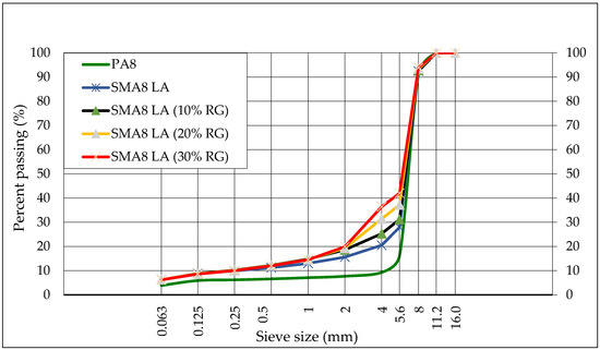 | PA8 | SMA8 LA | SMA8 LA (10% RG) | SMA8 LA (20% RG) | SMA8 LA (30% RG) | |