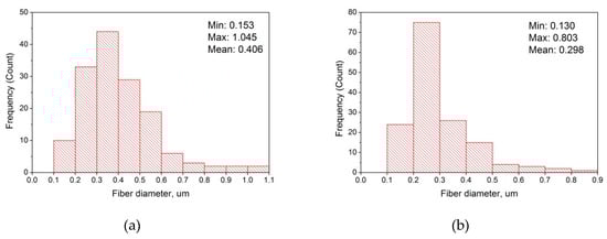 The diameter distribution of obtained nanofibers was estimated by OriginPro 2019b (OriginLab Corporation, Northampton, MA, USA). For measuring diameter distribution, several images were used.