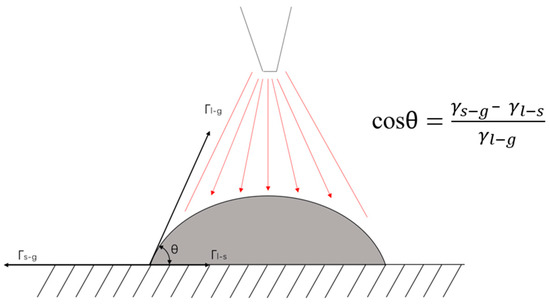 Schematic diagram of the relationship between the spread of the molten pool and the contact angle.