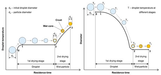 - Eslamian, M.; Ahmed, M.; Ashgriz, N. Modeling of Solution Droplet Evaporation and Particle Evolution in Droplet-to-Particle Spray Methods. Dry. Technol. 2009, 27, 3–13. [Google Scholar] [CrossRef]