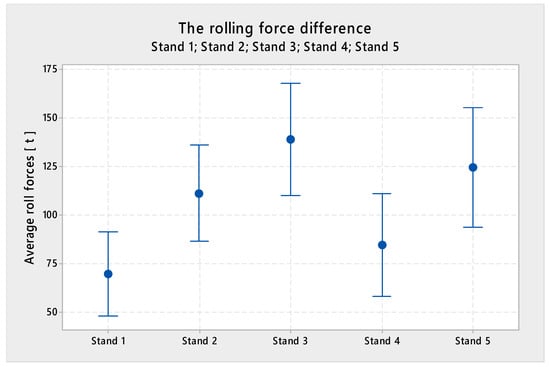 Figure 13 shows the difference between the average value of total rolling force at each stand at the reduced speed, created with a sample of 100 coils.