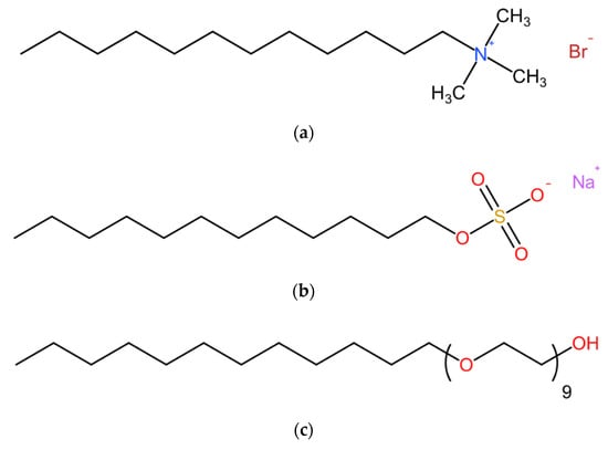 - Gao, X.; Chorover, J. Adsorption of sodium dodecyl sulfate (SDS) at ZnSe and α-Fe2O3 surfaces: Combining infrared spectroscopy and batch uptake studies. J. Colloid Interface Sci. 2010, 348, 167–176. [Google Scholar] [CrossRef]