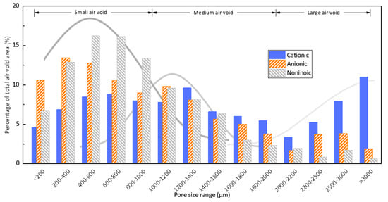 | Type of Surfactant | Proportion of Air Voids in Each Distribution Range/% | ||