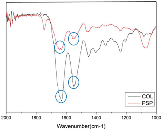 Fourier-transform infrared spectroscopy (FT-IR) spectra of the PSP and collagen type Ⅰ.