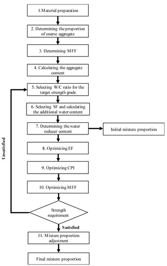 In the optimization stage (steps 8–10), the content of the water reducer can be adjusted to achieve the best fresh performance of the concrete.