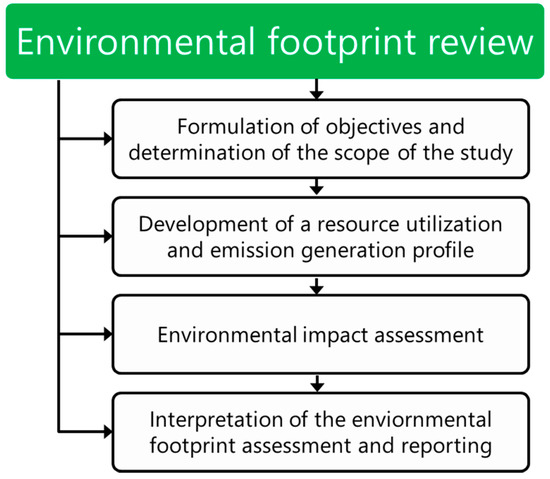 Some basic principles related to the evaluation of environmental footprints of various products, processes, and organizations, are presented in the European Commission Recommendation 2013/179/EU on the use of standard methods to measure and communicate the life cycle environmental performance of products and organizations [40]. In Figure 3, there is schematically presented the course of the environmental footprint assessment.