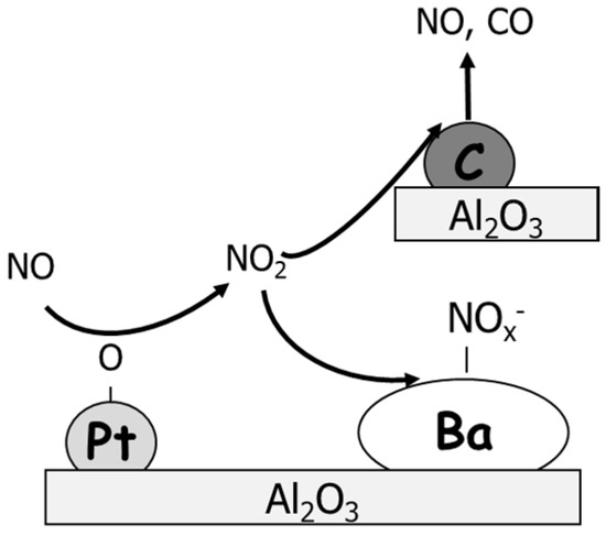 - Sullivan, J.A.; Keane, O.; Cassidy, A. Beneficial and problematic interactions between NOx trapping materials and carbonaceous particulate matter. Appl. Catal. B Environ. 2007, 75, 102–106. [Google Scholar] [CrossRef][Green Version]
