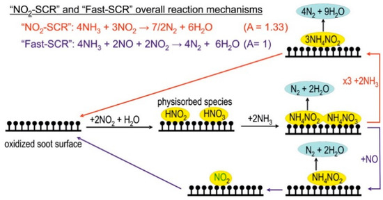 - Mehring, M.; Elsener, M.; Kröcher, O. Selective Catalytic Reduction of NOx with Ammonia over Soot. ACS Catal. 2012, 2, 1507–1518. [Google Scholar] [CrossRef]