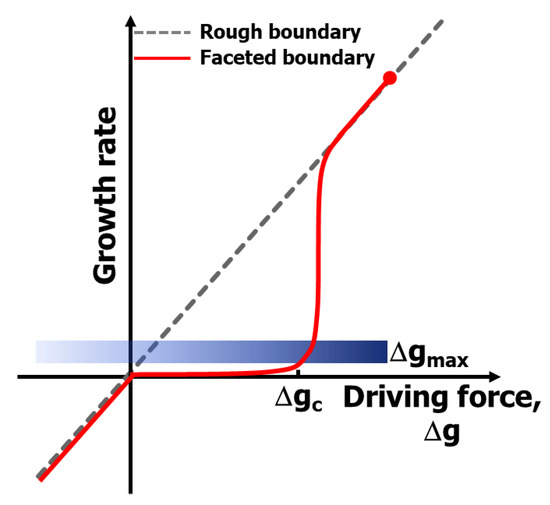 Schematic showing the mixed control model of boundary migration and grain growth [17] (reprinted with permission from Wiley). Δgmax: maximum driving force for the largest grain; and Δgc: critical driving force for appreciable migration of a faceted boundary.