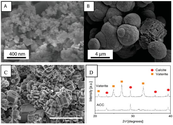10. Andreassen, J.P. Formation mechanism and morphology in precipitation of vaterite—Nano-aggregation or crystal growth? J. Cryst. Growth 2005, 274, 256–264. [Google Scholar] [CrossRef]