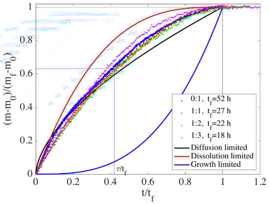 for vaterite dissolution control. The final time, tf, is the time when the mass fraction reaches the final plateau value.