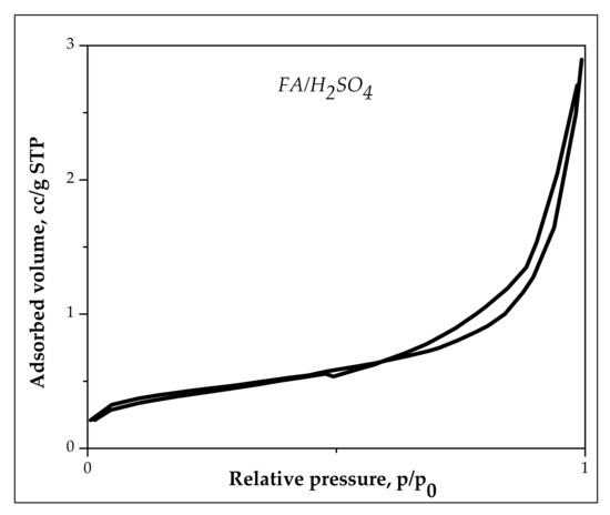 Nitrogen adsorption isotherm at 77 K on FA/H2SO4.