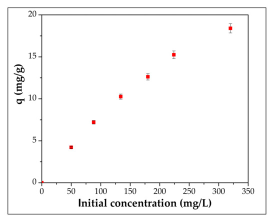 For the optimization of this parameter, different concentrations of Cd2+ (50–320 mg/L) were applied and the results are presented in Figure 7.