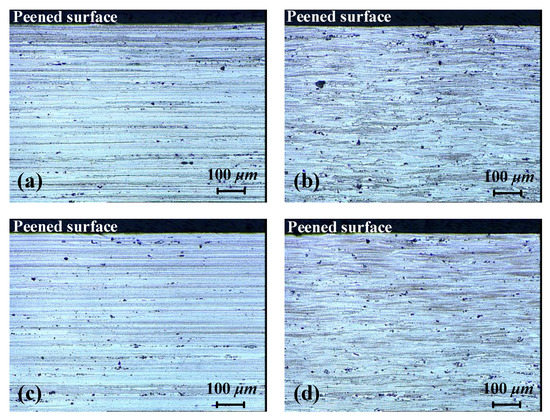 In addition to the milling-induced stress of the plate samples, the measurement indicated that the milling-affected layer extended up to 80~100 μm (Figure 1b). Given that identical milling operations were performed on the two plates and that the peening after milling was conducted conventionally, the initial stress condition was assumed to be the same in this study.