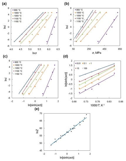 where: —strain rate (s−1); σ—flow stress (MPa).