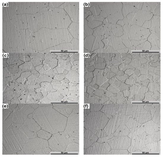 The starting microstructure of the Waspaloy rod used in this study (Figure 1) is characterized by a relatively homogeneous distribution of equiaxed grains. The precipitations of titanium carbides (TiC) located in the microstructure and finer carbides at the grain boundaries can also be observed. Moreover, annealing twins inside the grains are clearly visible.
