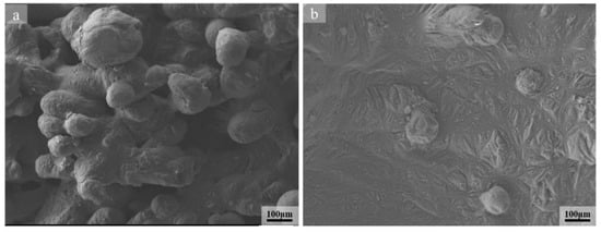 where λ represents the wavelength and d represents the initial diameter of the undisturbed cylinder. When this formula is satisfied, the liquid cylinder is stable under any disturbance. The larger the initial diameter of the cylinder, the longer it takes for the laser to break the cylinder to avoid agglomeration to form balling particles. That is, the more continuous the cylinder, the less likely it is to be broken into balling particles. When considering that the volume change of SLMed magnesium alloy cylinder during the crushing process is constant, so the size of the magnesium alloy liquid cylinder is positively related to the size of the agglomerate, and the diameter of the agglomerate generally increases with the energy input or decreases with the scanning speed [35], therefore reducing the scanning speed and increasing the energy density (Figure 3, Figure 4 and Figure 7) can prevent the liquid cylinder from being broken into agglomerates, thereby obtaining a continuous surface and reducing the balling rate [15].