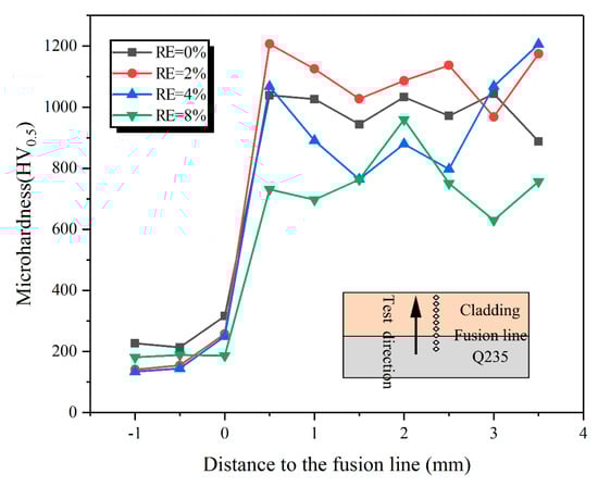 Microhardness of claddings with different RE contents.
