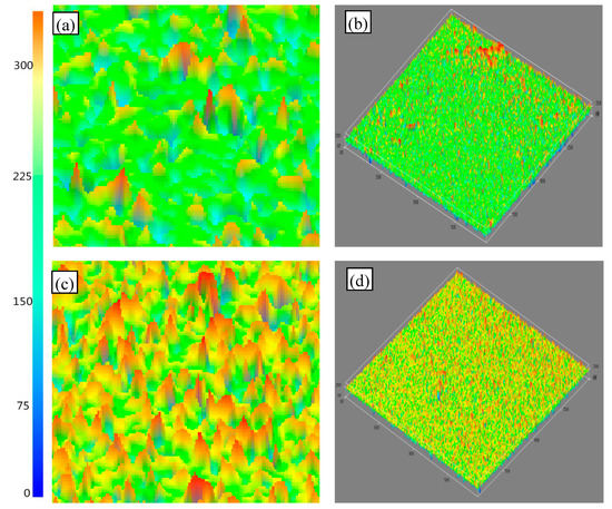 The three-dimensional and plane morphology of the steel fiber that pulled out from the concrete was observed by Atomic Force Microscope (AFM, Figure 8). The surface of plain steel fiber is relatively flat, with little fluctuation, as compared to zinc phosphate modified steel fiber. However, the overall thickness of zinc phosphate modified steel fiber is relatively higher, the surface undulation has an obviously cone-shaped structure, and the particles are closely arranged due to the existence of the zinc phosphate coating.