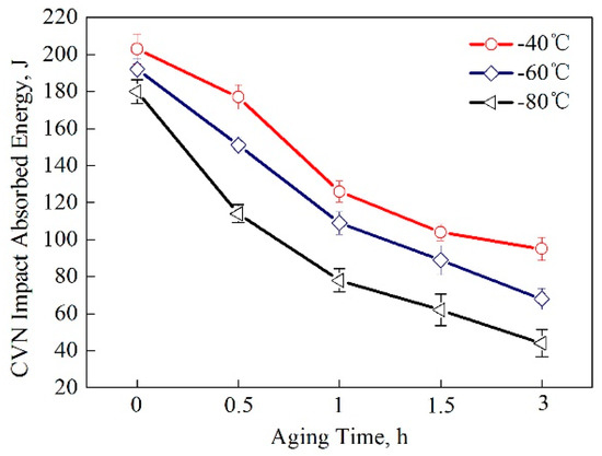 - Conversely, the low temperature toughness was destroyed by prolonged aging, which was caused by Cu precipitation. The CVN impact energy values decreased continuously when the aging process was prolonged due to the formation and coarsening of Cu particles.