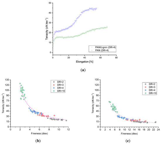The developed fiber based on PAN and lignin offered homogeneous and smooth-surface fibers with fineness values ~6 dtex, tensile strengths ~616 MPa, tensile moduli ~30 GPa, as well as elongation at break ~13.27%.