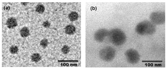 TEM study of (a) blank micelles and (b) doxorubicin (DOX)-loaded micelles of M2.