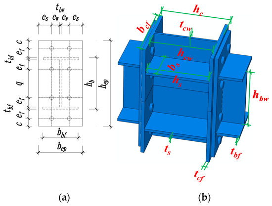 Figure 1. Design information: (a) End-plate connection parameters; (b) Joint parameter information. - (2)
