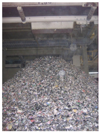 All tests were carried out with the same batch of waste selected by optical classification which, in addition to the presence of refractory elements, was characterized by including a high proportion of paper, plastics and non-ferrous metals (Figure 1). The selected batch of waste could contain particles of glass of any color, i.e., white, green, brown and blue (glass by different color was not separated).