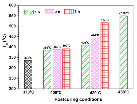 3.4. The Effect of Postcuring Conditions on the Thermal Properties of Cured Polyimides
