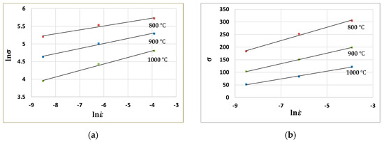 Then, can be obtained from the slopes of the ln curves. For instance, Figure 4a shows the plot of ln when the strain is 0.3.