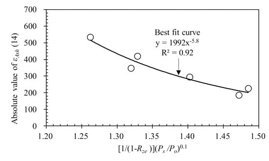 To determine the value of in HPC with zeolite, a regression analysis was performed using the present test dataset. The value of can be obtained from of concrete at a specified point () and . When t approaches infinity, the exponential time function will converge on unity. Because of the fact that it is impractical to perform an extremely long-term shrinkage measurement, can be calculated from with the adoption of a best-fitting regression procedure which uses a predictive model for shrinkage time history. Thus, is determined from when the experimental record is given at . Overall, can be calculated from the following equation [33]: