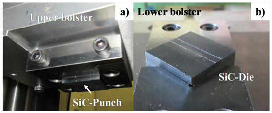 Upper and lower cassette die system. (a) Upper die set with SiC-coated SiC punch, and (b) lower die set with SiC-coated SiC die.