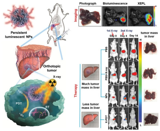 - Shi, T.; Sun, W.; Qin, R.; Li, D.; Feng, Y.; Chen, L.; Liu, G.; Chen, X.; Chen, H. X-Ray-Induced Persistent Luminescence Promotes Ultrasensitive Imaging and Effective Inhibition of Orthotopic Hepatic Tumors. Adv. Funct. Mater. 2020, 30, 2001166. [Google Scholar] [CrossRef]
