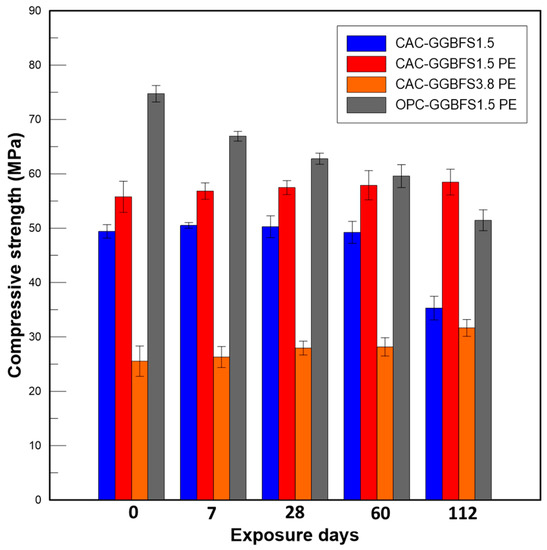 | 112 days | CAC-GGBFS 1.5PE | 6.01 ± 0.28 | 7.44 ± 0.48 | 2.93 ± 0.45 |