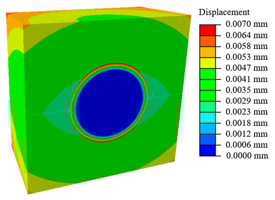 Displacement field map of the assembly cross section at temperature equilibrium (22.3 °C).