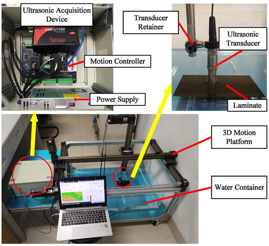- Hasiotis, T.; Badogiannis, E.; Tsouvalis, N.G. Application of ultrasonic C-scan techniques for tracing defects in laminated composite materials. Stroj. -Vestn. -J. Mech. Eng. 2011, 57, 192–203. [Google Scholar] [CrossRef]