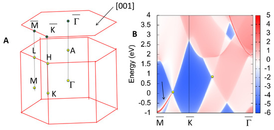 - Wu, Q.; Zhang, S.; Song, H.-F.; Troyer, M.; Soluyanov, A.A. WannierTools: An open-source software package for novel topological materials. Comput. Phys. Commun. 2018, 224, 405–416. [Google Scholar] [CrossRef]