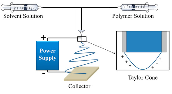 - Reneker, D.H.; Yarin, A.L. Electrospinning jets and polymer nanofibers. Polymer 2008, 49, 2387–2425. [Google Scholar] [CrossRef]