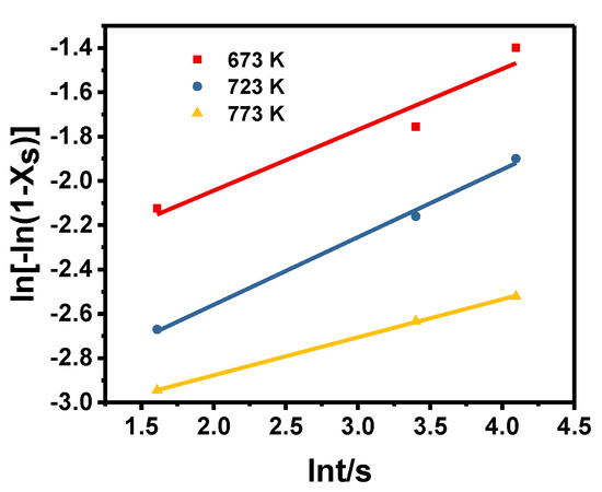The relationship between ln[−ln(1 − XS)] and lnt.