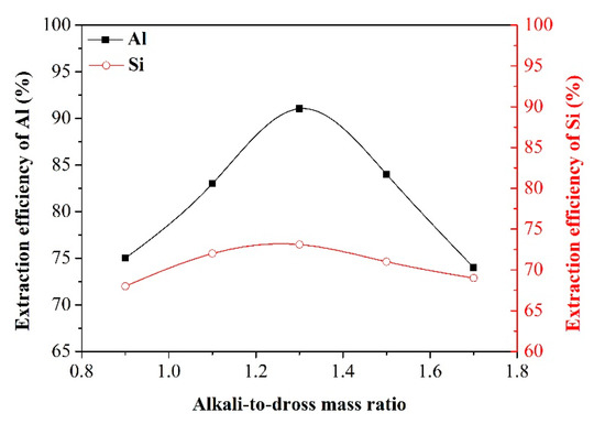 Effect of alkali-to-dross mass ratio on the extraction efficiency of Al and Si.