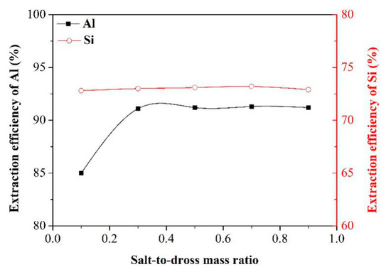 Effect of salt-to-dross mass ratio on the extraction efficiency of Al and Si.