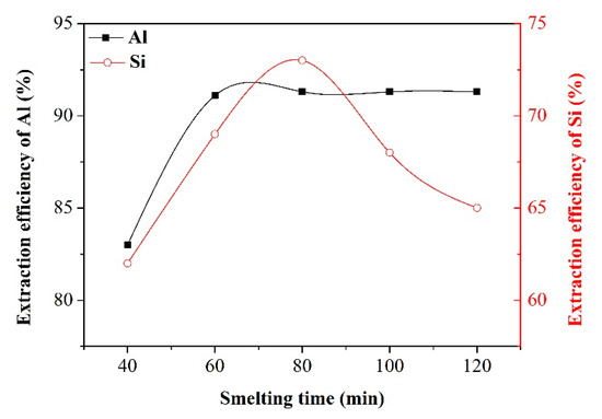 Effect of smelting time on the extraction efficiency of Al and Si.