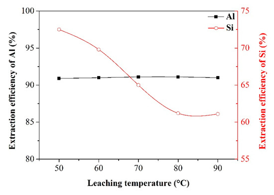 Effect of leaching temperature on the extraction efficiency of Al and Si.